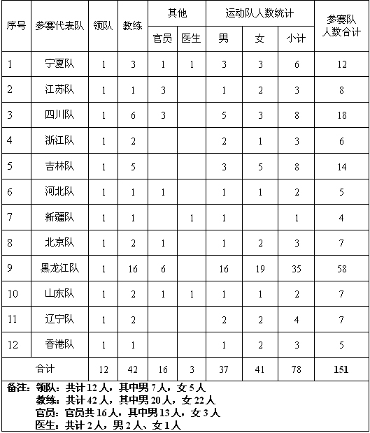 第十一届全运会花样滑冰比赛各参赛队人数统计