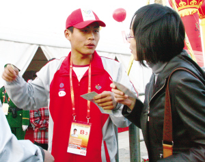我是在二号门检票的志愿者,虽然在那里风吹日晒,甚至要待到晚上九点多,但是这些天我在忙碌中快乐着。
