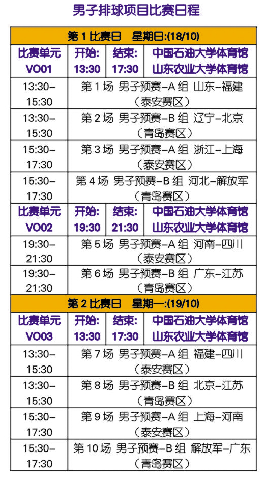 第十一届全运会男子排球项目比赛日程