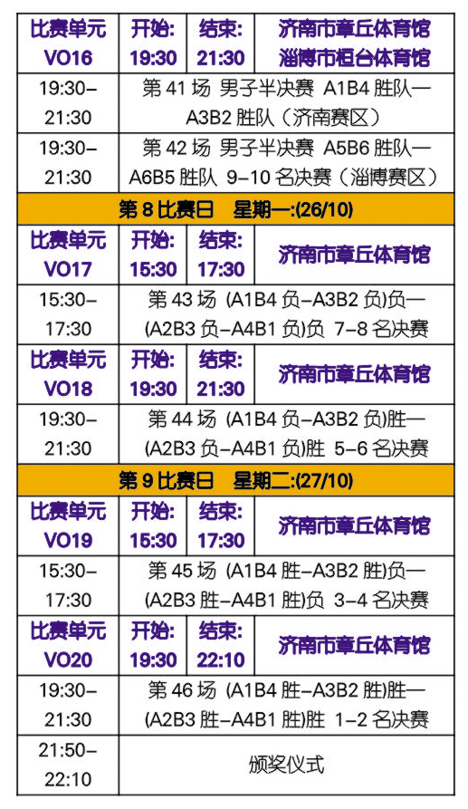 第十一届全运会男子排球项目比赛日程