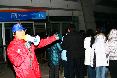 志愿者引领观众入场