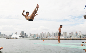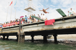 在奥帆中心内进行的海洋节高台跳水表演。 记者 徐崇德 摄
