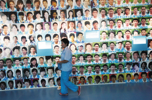 奥运博物馆内的奥运志愿者微笑墙 记者 徐崇德 摄