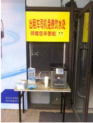 为此,海尔专卖店专门为广大出租车司机师傅们推出了免费饮水服务,希望能在这炎炎的夏日中为师傅们送上一片清凉。海尔美乐乐家居广场和蓝山湾海尔旗舰店,这两家专卖店的外面都悬挂着“请出租车司机免费饮水”的字样!