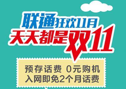 记者获悉,中国联通作为运营商电子商务发展的领跑者,针对双11节点,强力推出“预存话费,0元购机,入网即免2个月话费!”的优惠政策,更有四重免单 让用户狂欢11月!