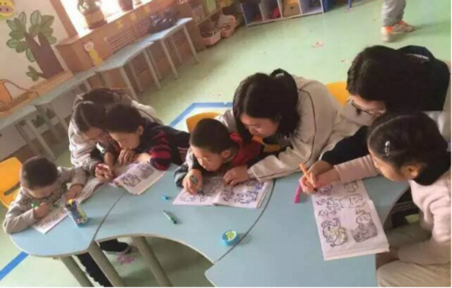青岛九中中美班学生前往残联儿童自闭症康复中心帮助患病儿童完成康复辅导训练。