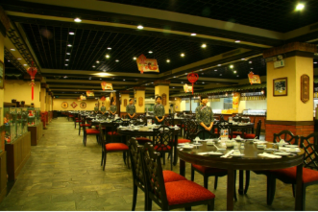 食街的大厅里整齐的古典中式桌椅和高挂的火红宫灯显得红红火火、勃勃生机。墙上的青岛老照片,恰到好处地增添了本土文化气息。梅兰竹菊樱五个优雅的单间,方便了客人的恳谈。令人爱不释手的天津“泥人张”,蕴含食街的古韵古香。