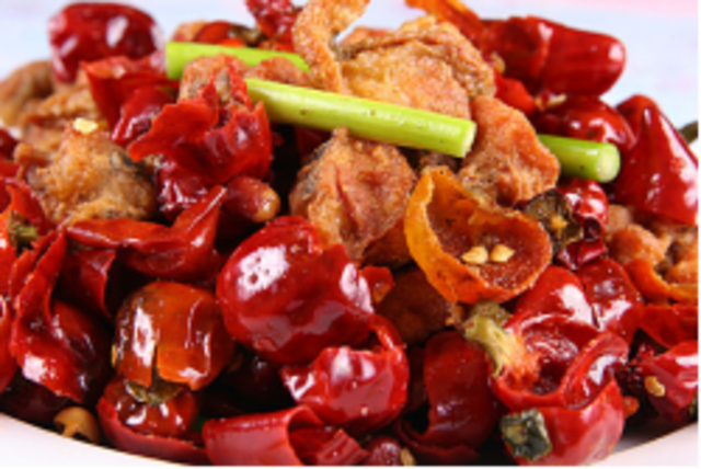 食街的名菜很多,其中一道“歌乐山辣子鸡”,用料特别讲究,主料一定选用土仔公鸡,肉质鲜嫩肥美,辅料选用了川产上等辣椒和大红袍花椒,烹制后,香气四溢,诱人食欲,麻辣适口,入口酥脆。在满盘红亮的辣椒中轻挑慢选寻找鸡丁,回味悠长而使食客津津乐道。