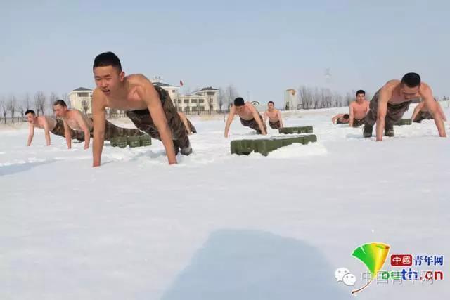 训练体能,锻炼意志。连队官兵在零下低温中赤膊进行雪浴抗寒训练。