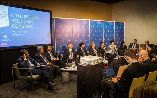 2016年5月20日,在波兰卡托维茨,来自中国和波兰的专家学者在第五届欧洲与中国经济合作论坛上交流讨论。新华社记者陈序 摄