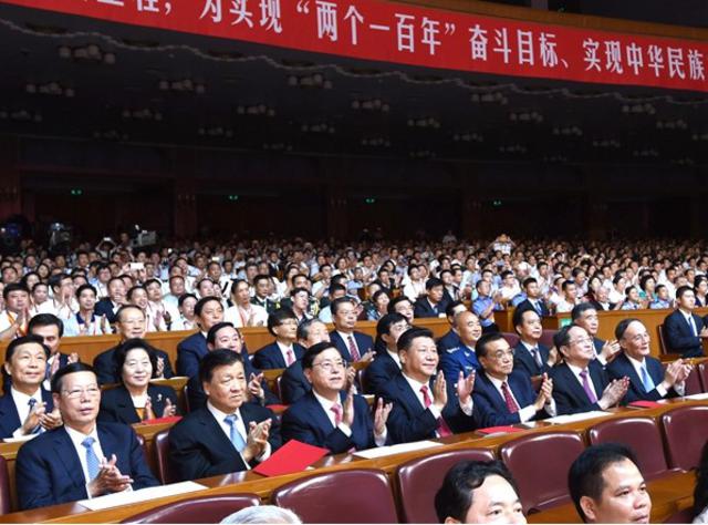 中共中央、全国人大常委会、国务院、最高人民法院、最高人民检察院、全国政协、中央军委领导同志观看音乐会。