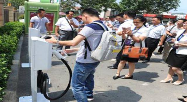 海客会物业管家为参观来宾讲解海客会智能充电桩
