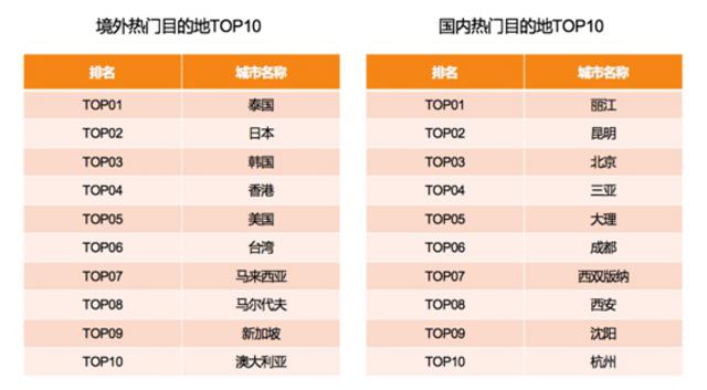 这个十一人们都会去哪里玩儿呢?《报告》显示,出境游方面,泰国、日本、韩国是最热门的国家,东南亚国家中有4个位列Top10,是最受欢迎的地方。国内游中,丽江、昆明和北京位列最热门城市前三位,旅游大省云南依旧为最热门省份。
